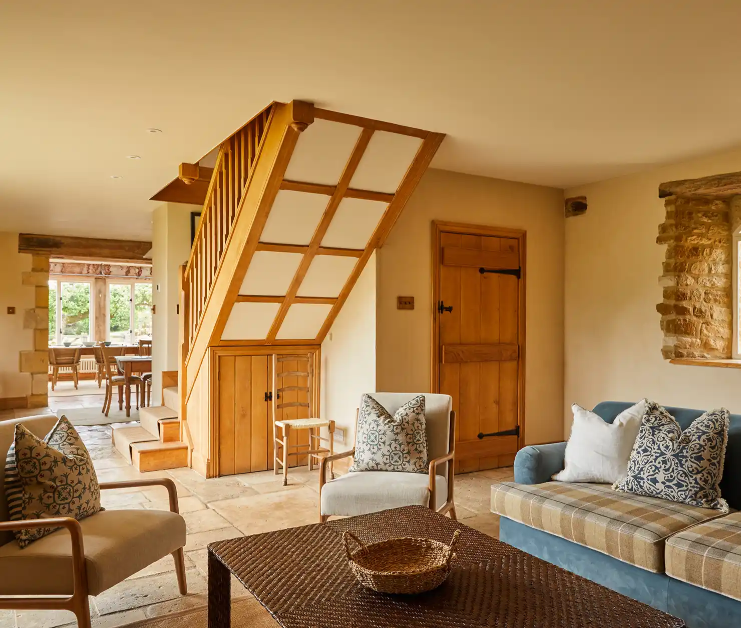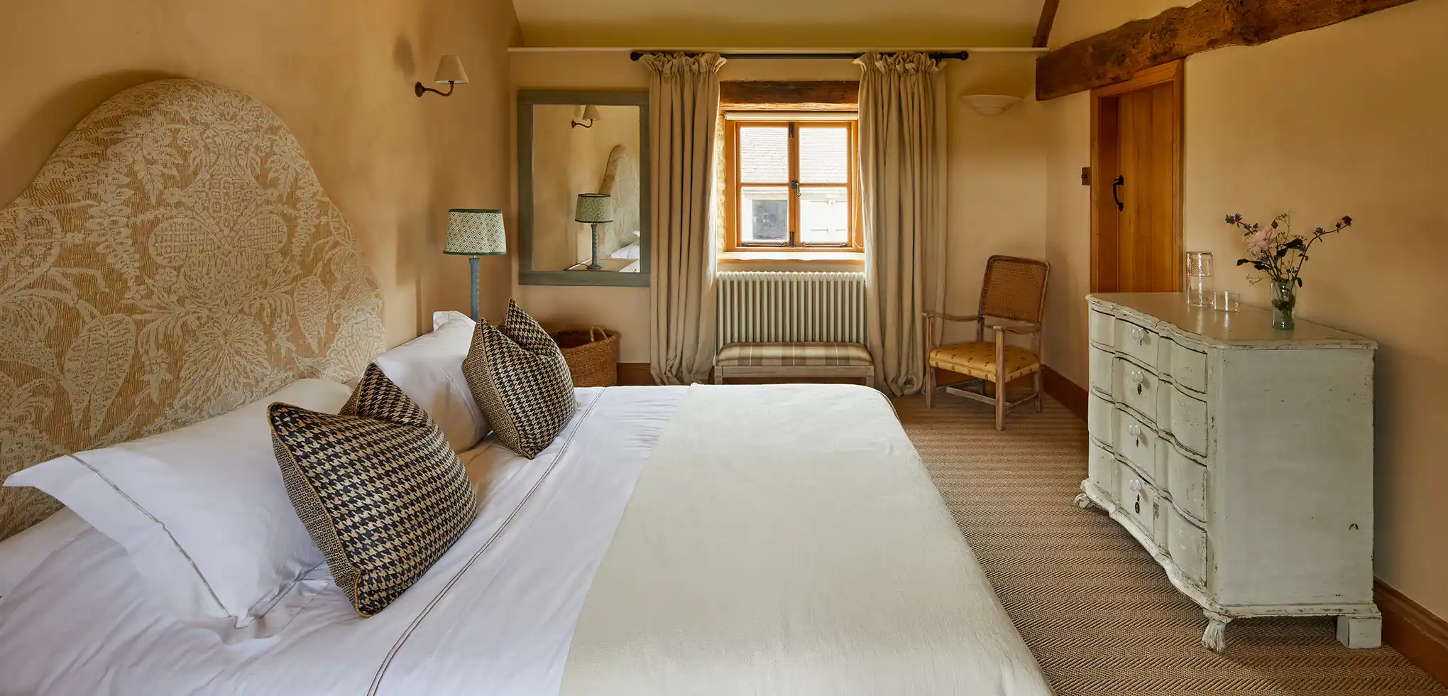 Once a simple outbuilding and now a warm, welcoming home from home, the Cottage has been thoughtfully restored with comfort in mind. Converted in the late ’90s and refreshed in 2024, it blends rustic charm, complete with exposed beams, with modern ease. French windows open onto the garden for summer days filled with birdsong, while a log burner keeps things cosy in winter.