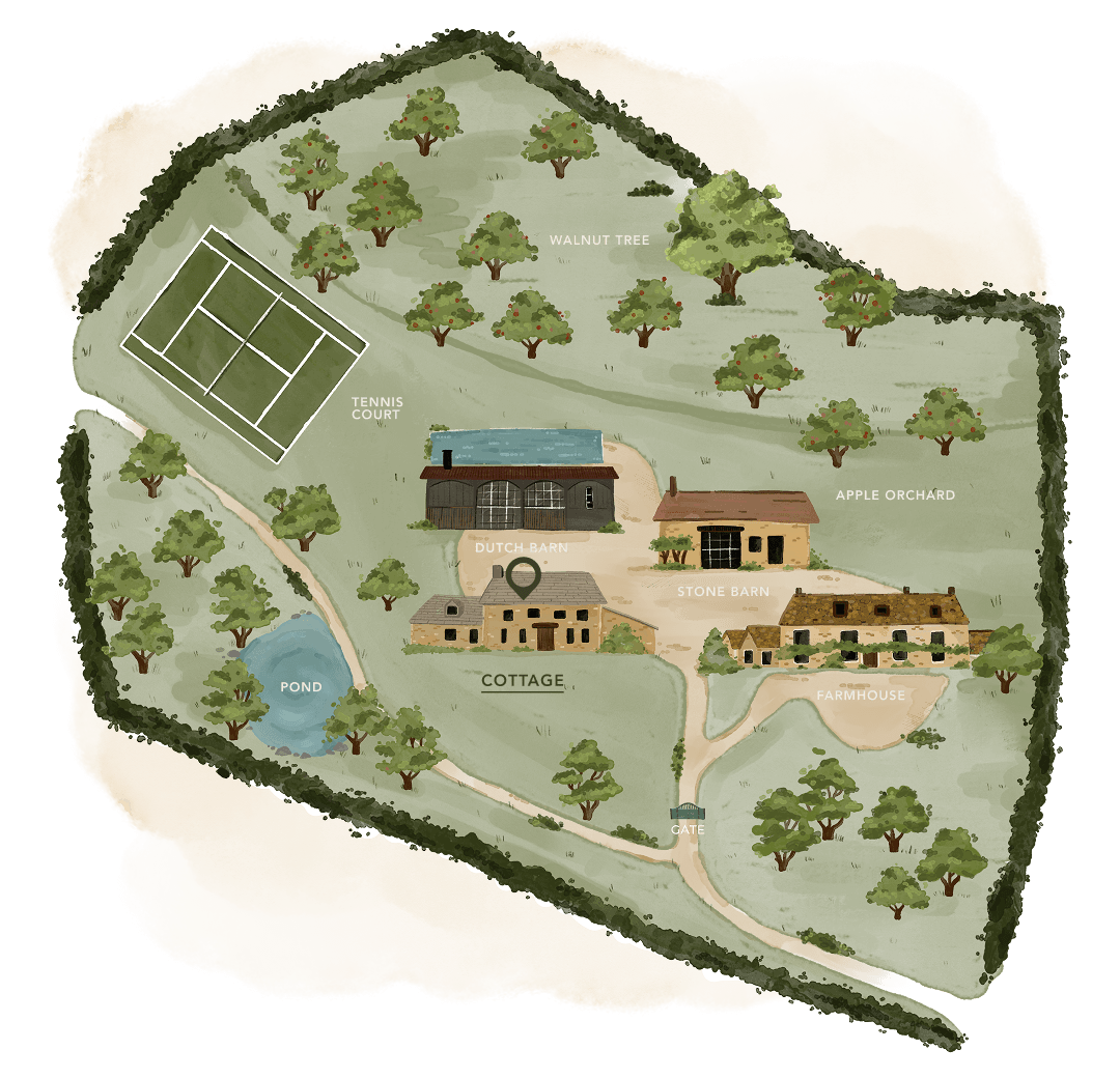 Surrounded by open countryside, the Cottage offers a peaceful slice of farm life. Enjoy your morning coffee on the terrace, linger in the conservatory overlooking the fallen apple tree, or listen to birdsong drifting from the hedgerow. Whether you’re sharing slow meals outdoors or simply soaking up the quiet, the Cottage invites easy, unhurried days.