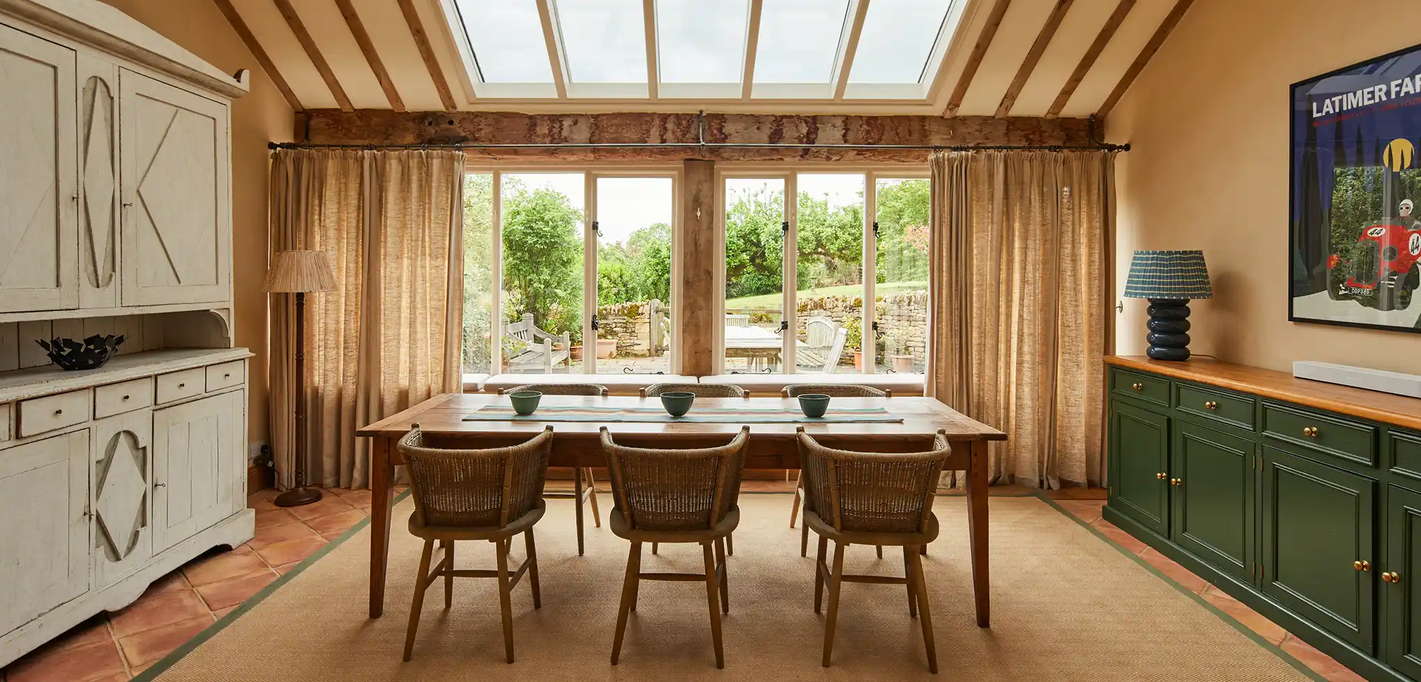 Surrounded by open countryside, the Cottage offers a peaceful slice of farm life. Enjoy your morning coffee on the terrace, linger in the conservatory overlooking the fallen apple tree, or listen to birdsong drifting from the hedgerow. Whether you’re sharing slow meals outdoors or simply soaking up the quiet, the Cottage invites easy, unhurried days.