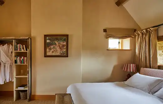 Known as the Annexe, this cosy room is accessed via external stairs and features natural light, characterful touches, an en suite bathroom, and its own private kitchenette.