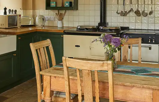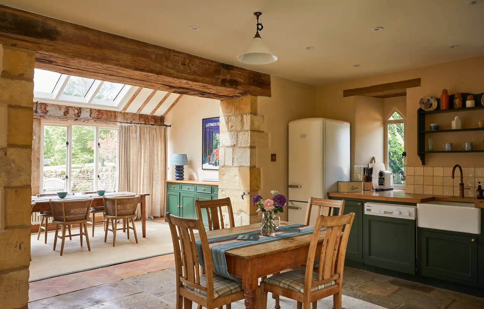 The well-equipped kitchen and conservatory table make it easy to linger over breakfast or come together for long, easygoing suppers.